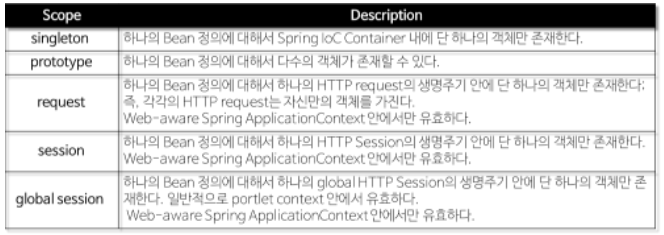 Bean Scope란 Bean이 존재하는 범위를 의미한다.